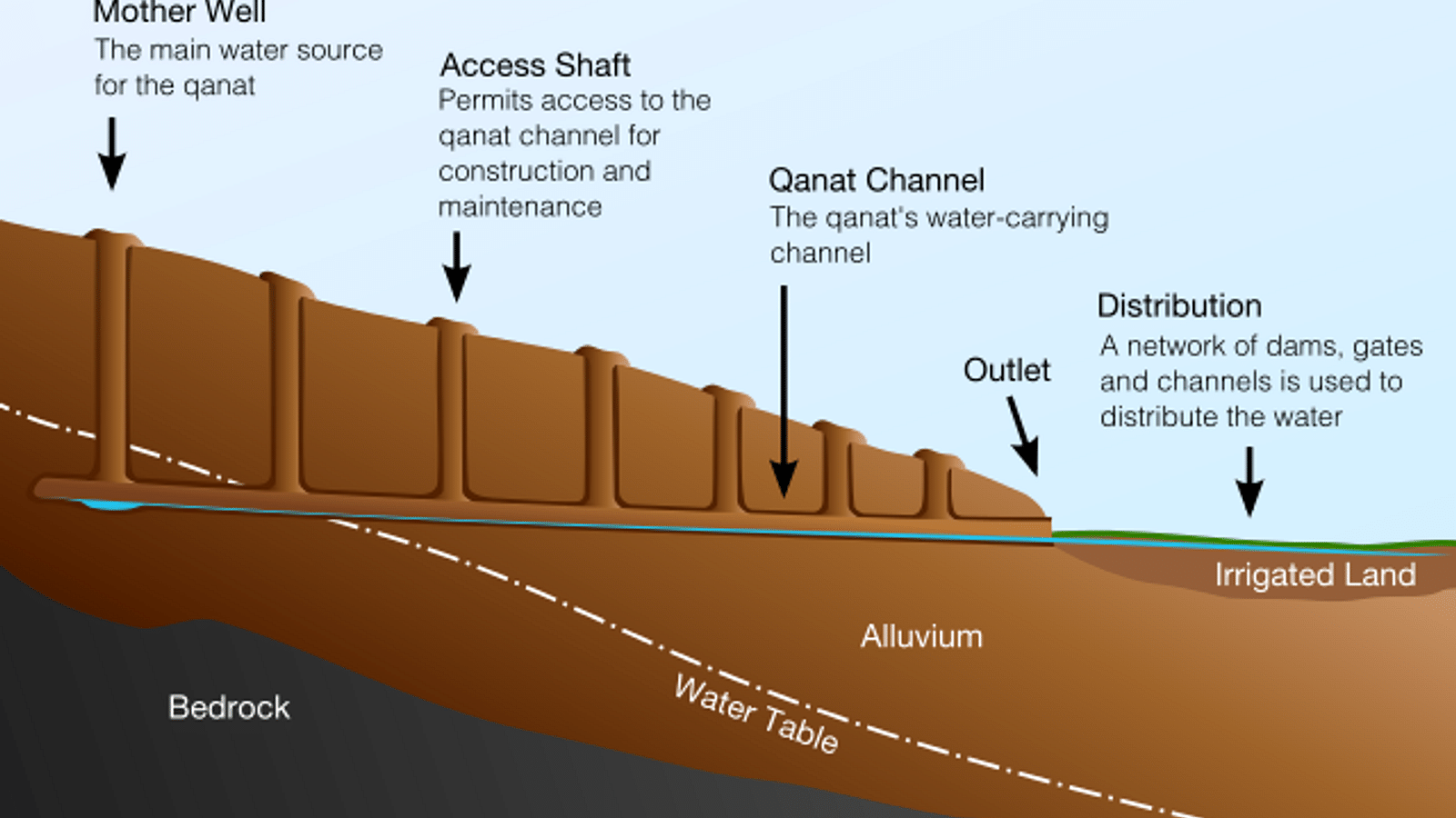 The Qanat system boasts several key advantages, making it highly resilient to both natural disasters such as earthquakes and floods and deliberate destruction during wartime. Moreover, it exhibits remarkable insensitivity to precipitation levels, ensuring a consistent flow with gradual fluctuations even in the transition from wet to dry years. From a sustainability standpoint, qanats rely solely on gravity for their operation, resulting in minimal ongoing maintenance costs once constructed. Additionally, qanats play a crucial role in transferring freshwater from mountain plateaus to lower-lying plains with saline soil, effectively controlling soil salinity and thwarting the onset of desertification.